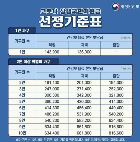 2021년 6월 건강 보험료를 기준으로 건강 보험료 본인 부담금 금액을 합산해 보시면 지원금 대상 여부를 확인해 보실 수 있을 것입니다.